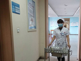 三病区护士李彩霞的典型一天是这样的:每天早上,一到医院立即整理医务室卫生,然后进行清点医疗用品,参加科室晨会,加液体,核对药品,发放口服药,换输液瓶,测量新病人的生命体征,每一个细节都需要一丝不苟。