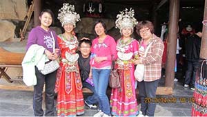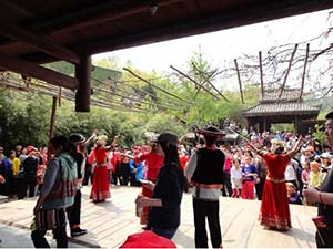 阳光明媚的天气,欢声笑语中我们来到九顶塔下。在千年古塔的四周,分布了16少数民族村寨,沿路有蜿蜒、错落的少数民族山寨,在这里我们了解到各个民族的建筑、歌舞、服饰、餐饮文化等,体验每个民族不同的风土人情。